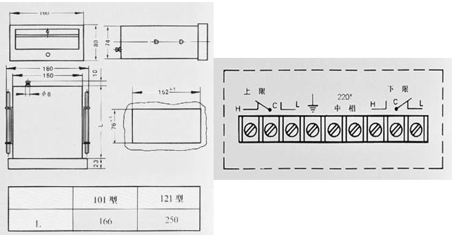 外形尺寸(單位:mm) 接線端子圖(YEJ-121)